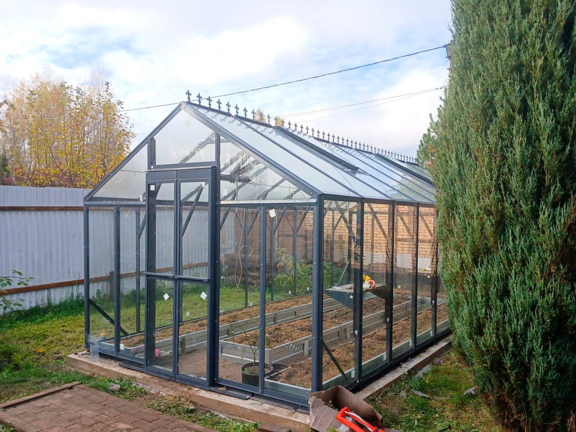 Стеклянное покрытие обеспечивает максимально естественное освещение растений и способствует равномерному распределению света внутри теплицы. Это положительно влияет на фотосинтез и развитие культур.